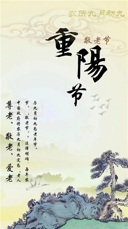 九月九是重陽,秋風(fēng)送來天高氣爽,登高望遠(yuǎn)神清氣爽,丹桂帶來十里飄香,菊花爭艷競相開放,祝福紛紛來送上,祝我親愛的媽媽重陽快樂,身體安康!——黨群人事部陳雅彬